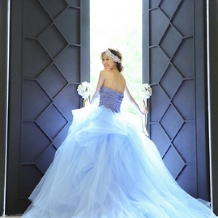 ブルーのステンドグラスから光が差し込む独立型チャペル。13mの天井と大理石でできた10mのバージンロードが、神聖な空間を際立たせます。天使の羽が舞いおりるドラマチックなエンジェルセレモニーなど、多彩な演出も可能です。