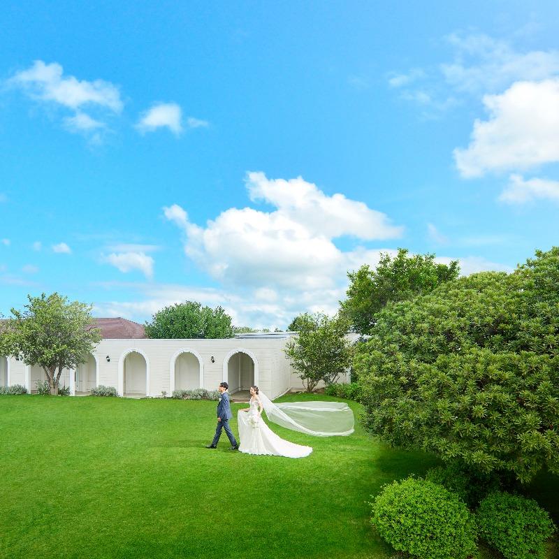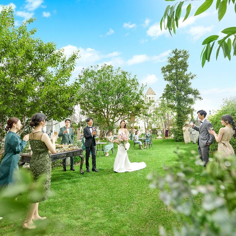 【芝生と緑に囲まれたガーデン挙式が叶う】関西でも最大級のガーデンでの挙式でゲストと一緒にナチュラルウエディングを!ガーデン挙式からガーデンパーティまで自然に囲まれた一日をご提案!