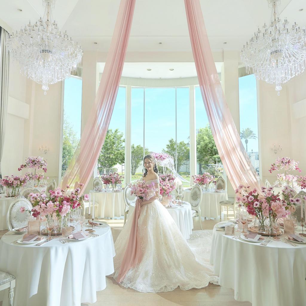 最旬ドレスが展示された会場を見学できるだけでなく、試着して花嫁気分を楽しめる。4万円相当の絶品フレンチも味わって!土日の結婚式だと最大135万円の特典付き(平日の結婚式だと更にお得な平日限定プラン有)