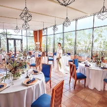 披露宴会場は最上階にあるメキシカンテイストの『ネストラ カーサ』。ガラス張りの開放的な会場です。大切なゲストと景色を楽しみながらゆったりとしたひとときを過ごすことができます。