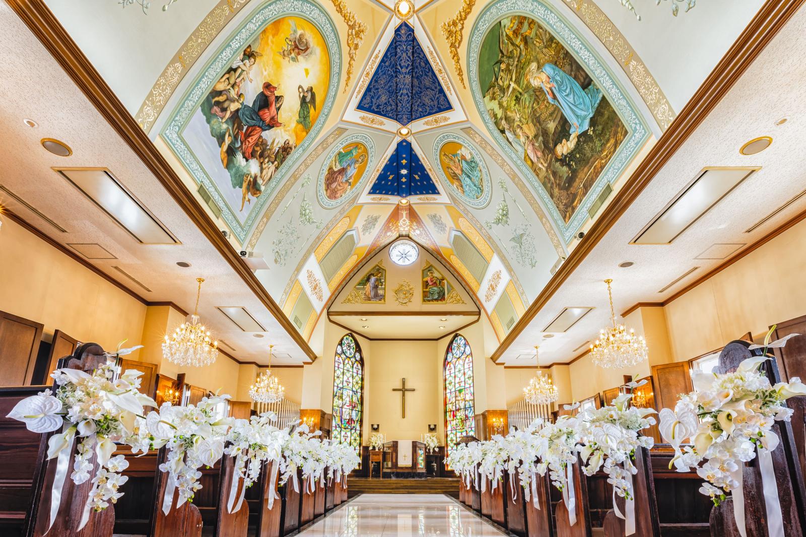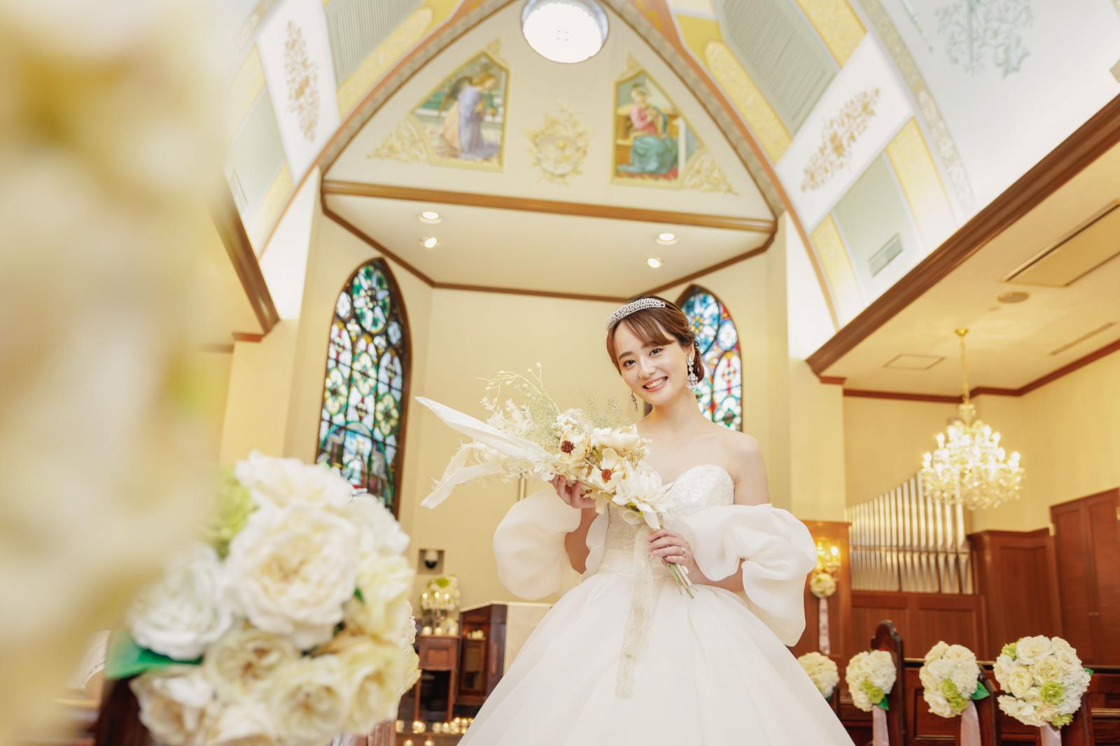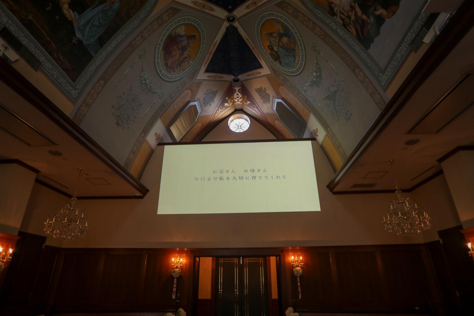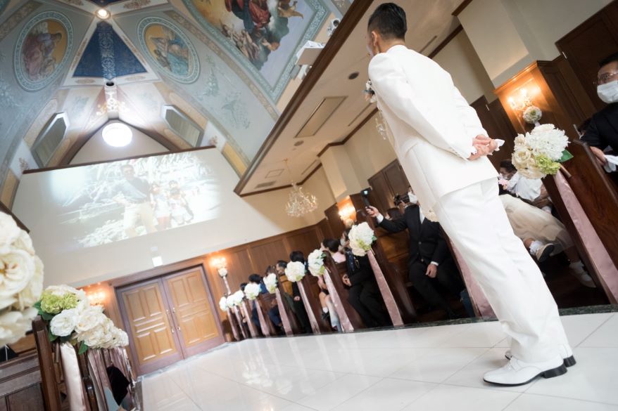 ご結婚式当日はパイプオルガン・バイオリンの生演奏・聖歌隊による生歌で心に残る感動の挙式が叶う!また、大切な方との思い出を映像で振り返る感動セレモニーを執り行うことができます