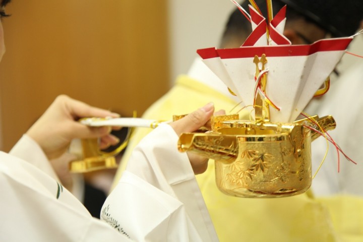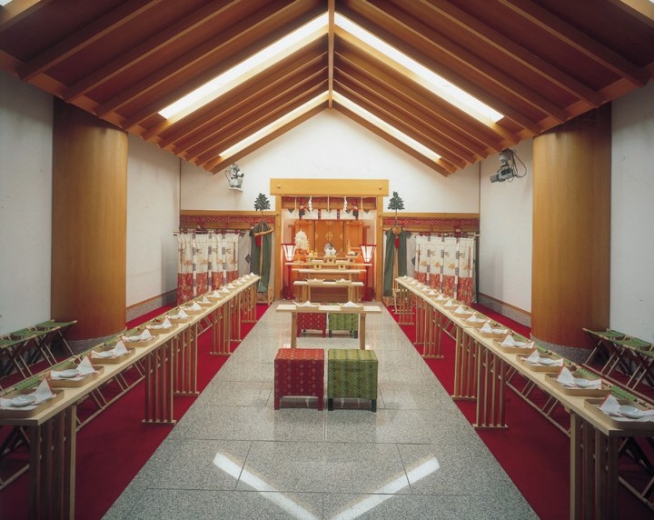 格式高く日本の伝統美で厳かに。館内には神前挙式をご希望のお客様の為に「神殿」をご用意しております。広々とした格式高い和の空間は、御親族の皆様にも喜ばれることでしょう。