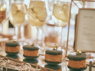 シンプルさを際立たせることで上品・洗練された印象のウエディングケーキや、一口サイズのスイーツの数々。芸術品のような繊細なデザインはみためでも特別な気分を味わせてくれる
