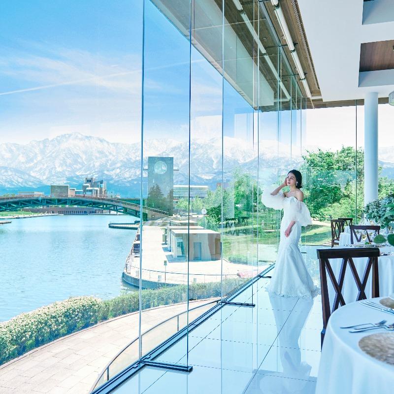 【フェア参加で5,000円ギフト券、さらに1件目来館であればご成約でレストランペアチケット8,000円分プレゼント】フォト婚で写真だけ残したい&お食事会をご検討の方にぴったりのフェア!環水公園を望むチャペルと会場でフォト体験!富山県産食材を使用した贅沢な試食付♪
